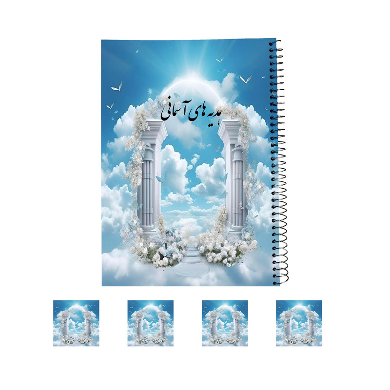 دفتر مشق 100 برگ مدل هدیه های آسمانی کد 1 به همراه برچسب مجموعه 5 عددی