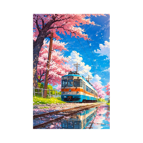 متال پوستر طرح قطار و شکوفه های گیلاس مدل مینیمال کد A1