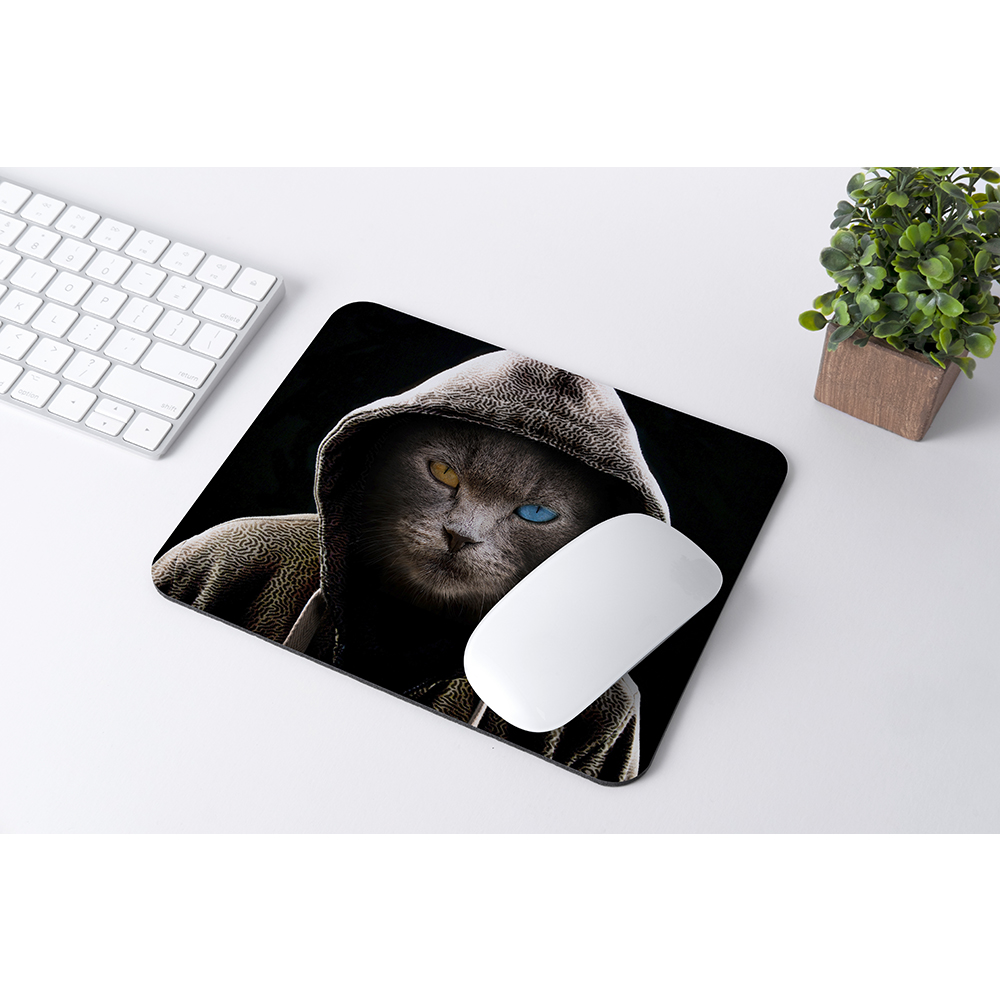 ماوس پد مدل گربه سامورایی طرح موس پد گربه چشم دو رنگ کد 01
