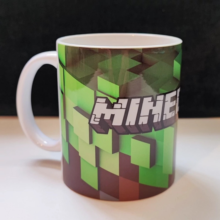ماگ سرامیکی ،سفید رنگ، سایز 11 oz ،طرح ماین کرافت ،قابل استفاده در ماکروویو، جهت ماندگاری بیشتر طرح، برای شستشوی داخل ماشین ظرفشویی قرار ندهید