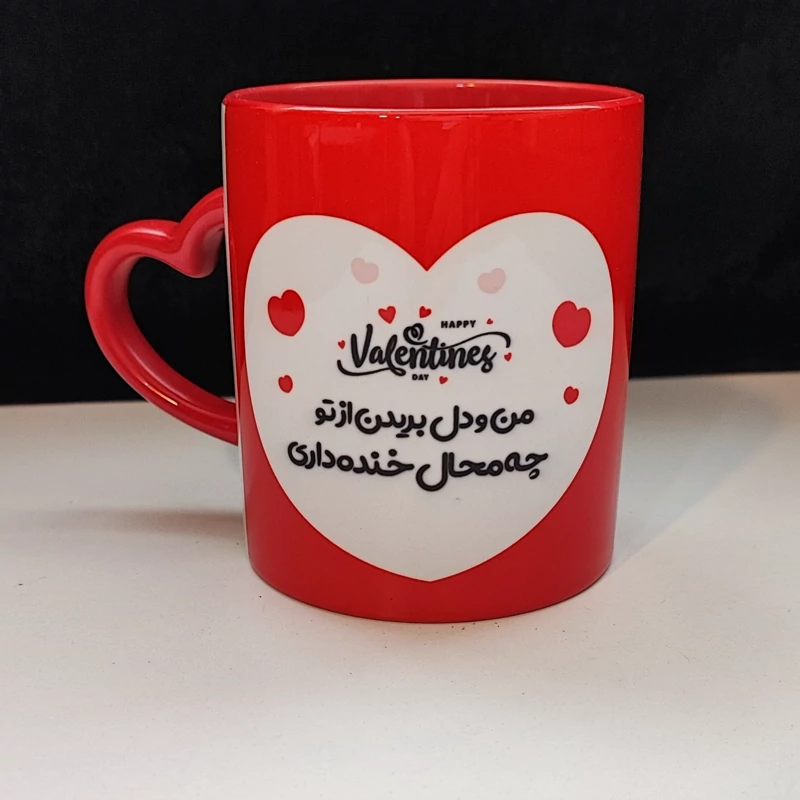 ماگ سرامیکی دسته قلبی قرمز طرح عاشقانه کد 01