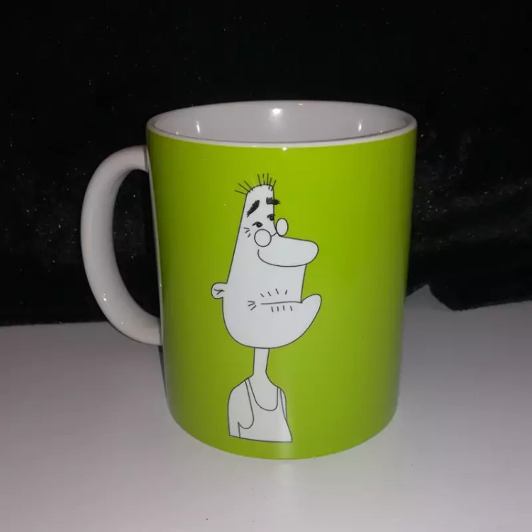 طرح بابا بزرگ چاپ شده روی ماگ سایز 11oz ،دسته و داخل لیوان سفید می باشد