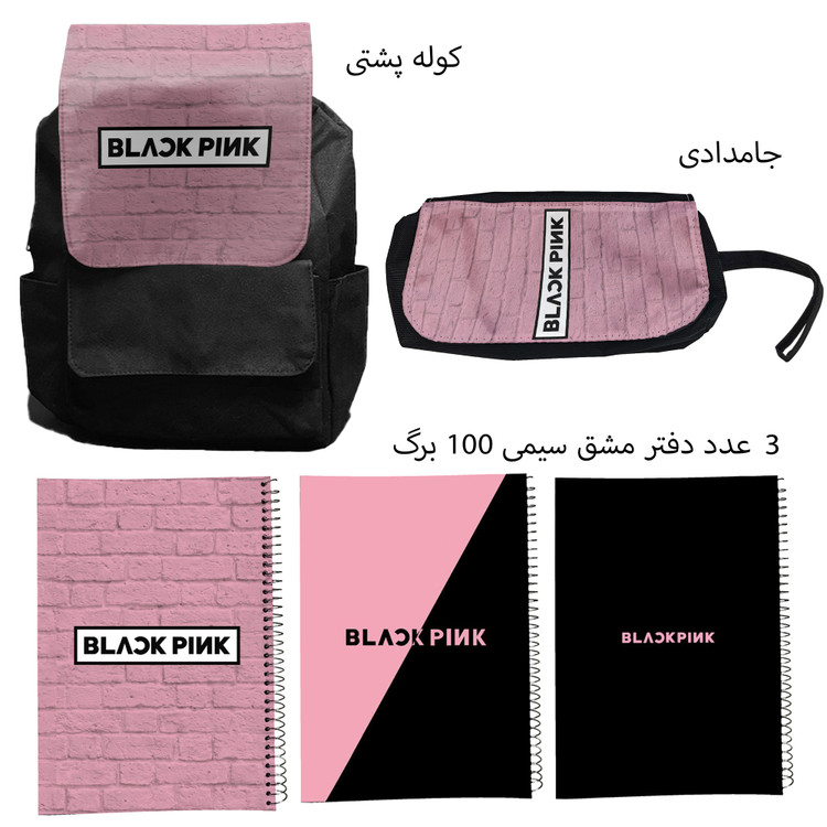 کوله پشتی مدل گروه موسیقی بلک پینک کد Blackpink 4 به همراه دفتر مشق و جامدادی مجموعه 5 عددی