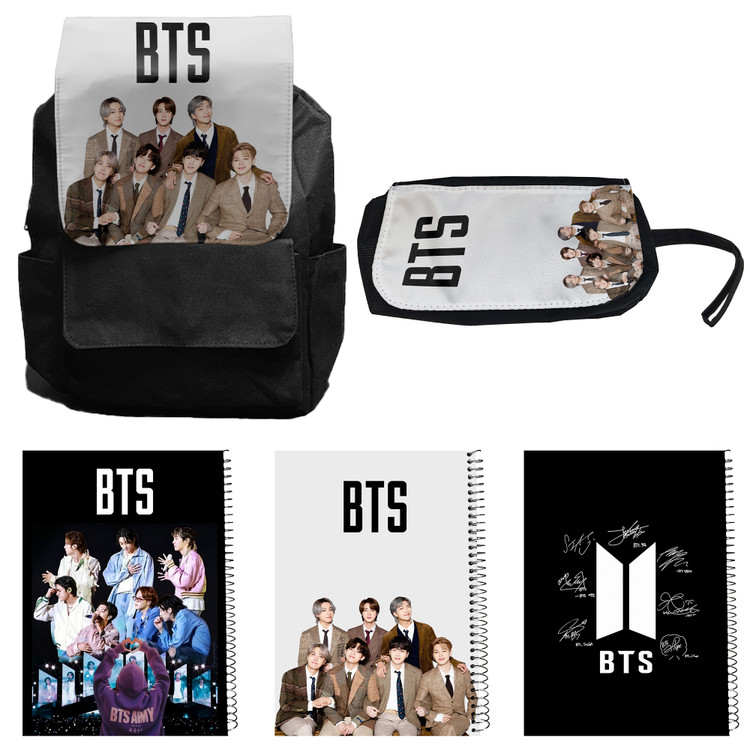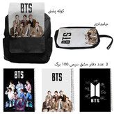 کوله پشتی مدل گروه موسیقی بی تی اس کد BTS 1 به همراه دفتر مشق و جامدادی مجموعه 5 عددی