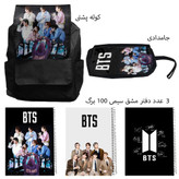 کوله پشتی مدل گروه موسیقی بی تی اس کد BTS 3 به همراه دفتر مشق و جامدادی مجموعه 5 عددی