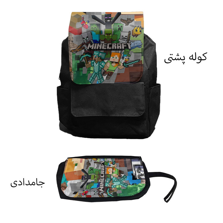کوله پشتی مدل ماینکرافت کد Minecraft 1 به همراه جامدادی مجموعه 2 عددی