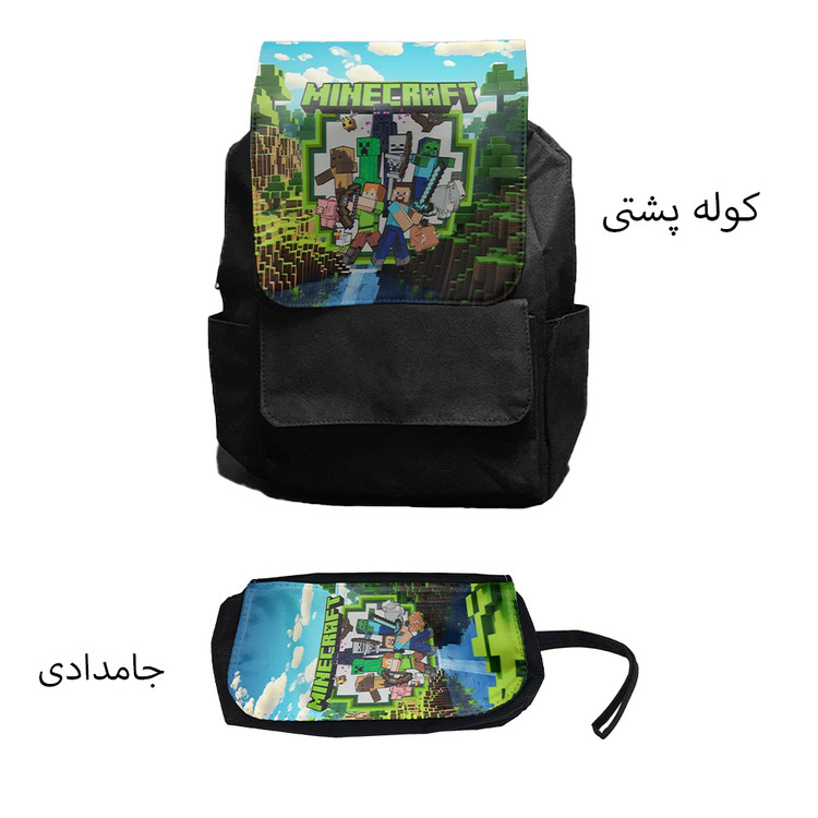 کوله پشتی مدل ماینکرافت کد Minecraft 2 به همراه جامدادی مجموعه 2 عددی