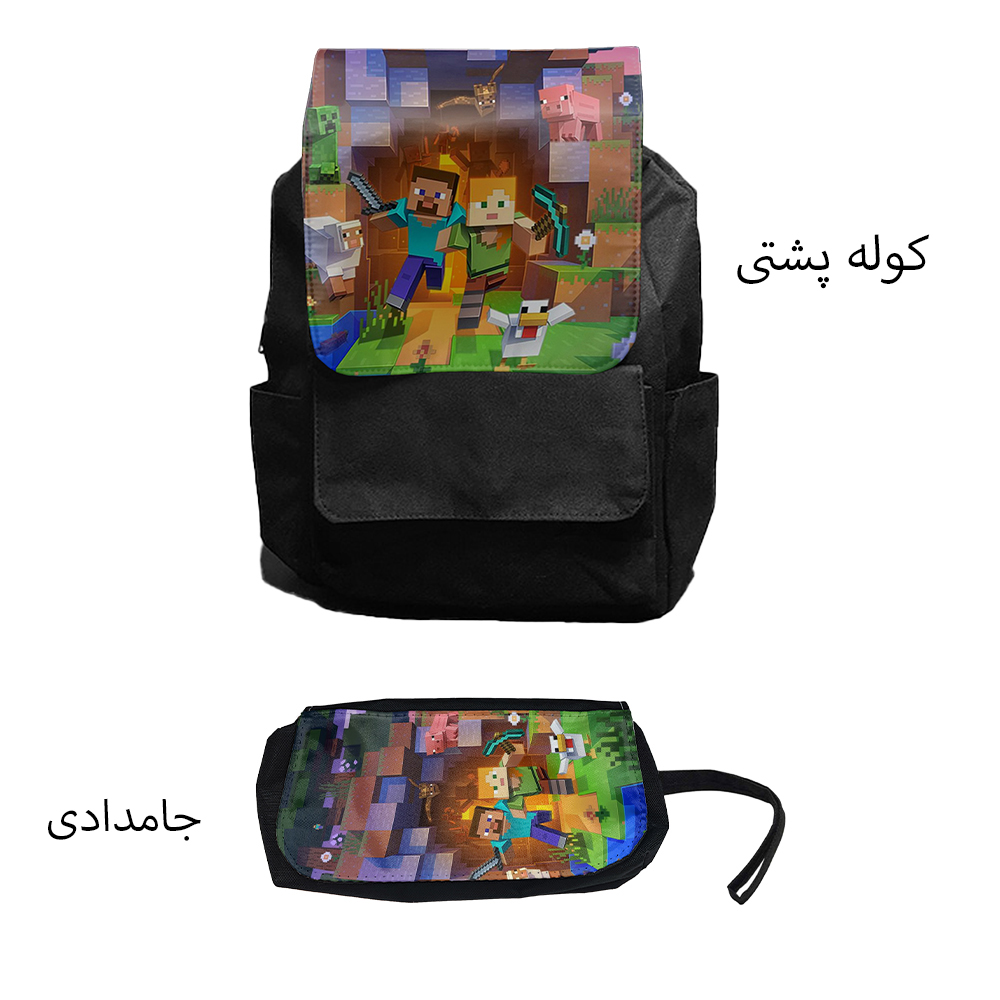 کوله پشتی مدل ماینکرافت کد Minecraft 3 به همراه جامدادی مجموعه 2 عددی