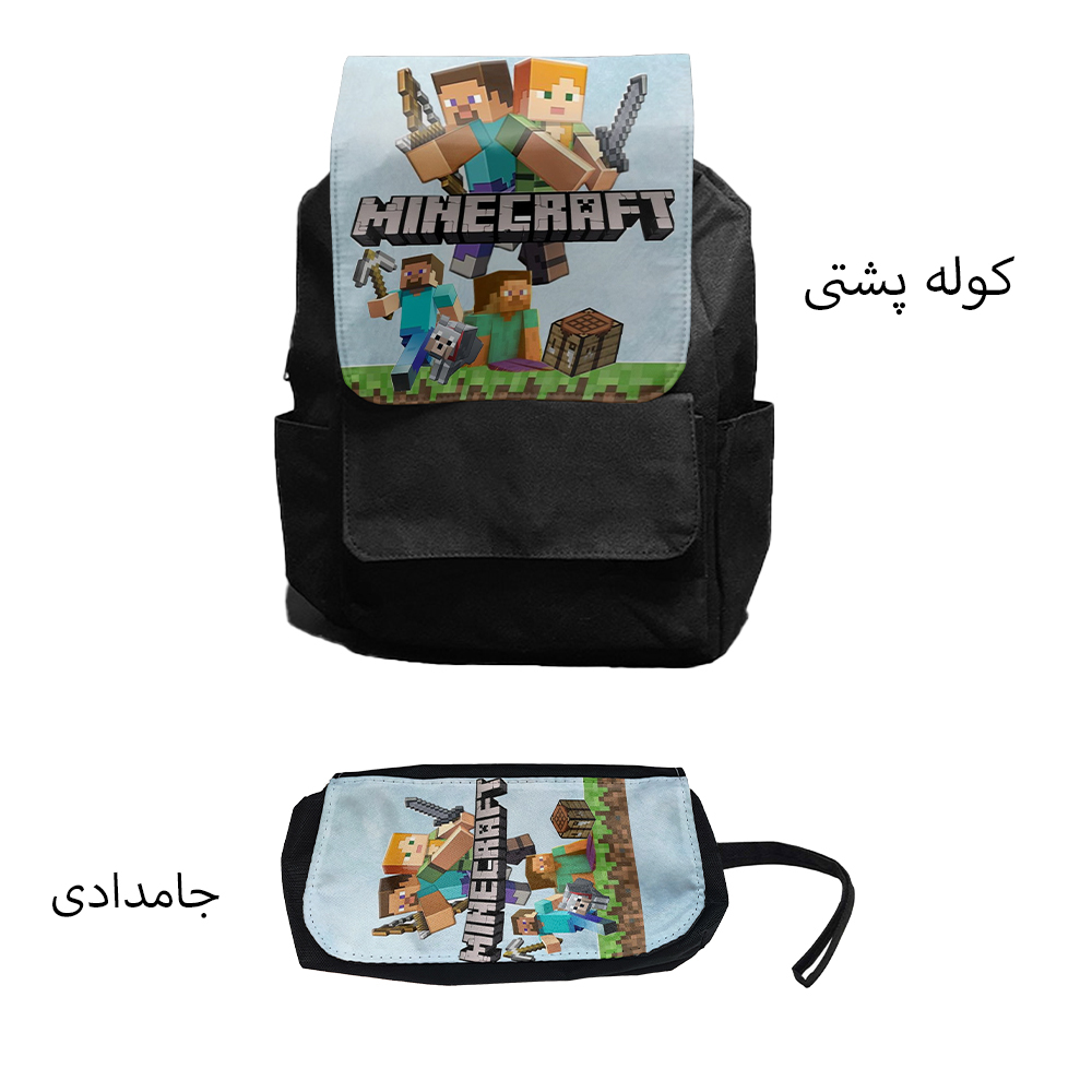 کوله پشتی مدل ماینکرافت کد Minecraft 8 به همراه جامدادی مجموعه 2 عددی
