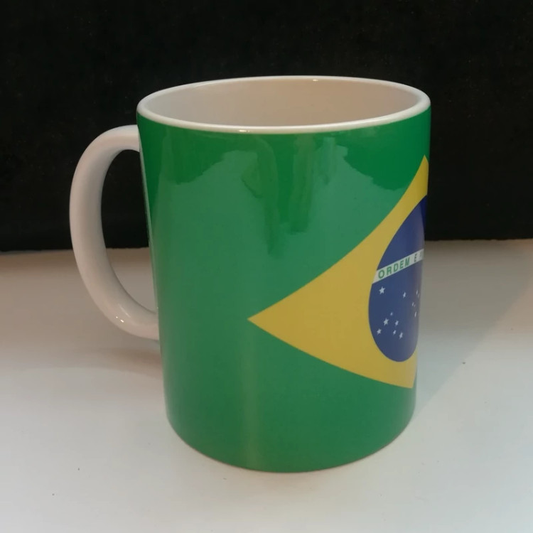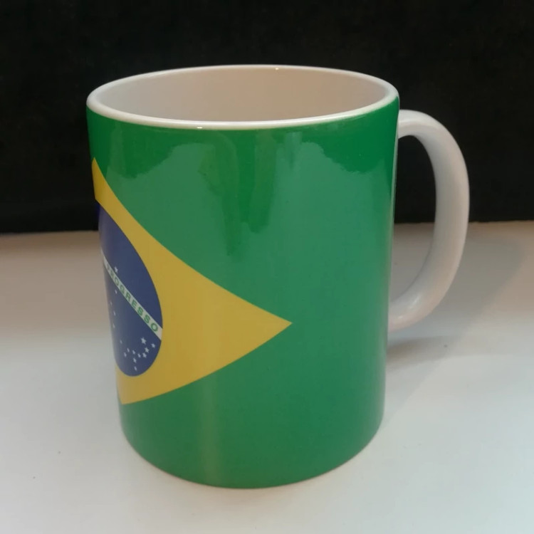 ماگ سرامیکی ،سفید رنگ، سایز 11 oz ،طرح پرچم کشور برزیل ،قابل استفاده در ماکروویو، جهت ماندگاری بیشتر طرح، برای شستشوی داخل ماشین ظرفشویی قرار نداهید