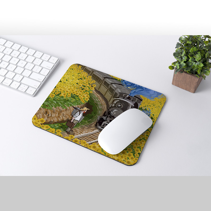 ماوس پد طرح گل های آفتابگردان ونگوگ و قطار مدل The Starry Night کد 001